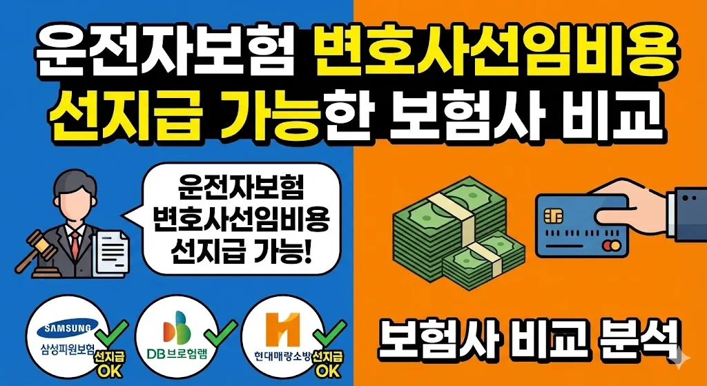 운전자보험 변호사선임비용 선지급 가능한 보험사 비교에 대해 정리했습니다. 교통사고 형사 사건은 변호사 선임 시점이 빠를수록 유리하지만, 대부분 보험사는 ‘사건 종결 후 후지급’ 방식이라 실질적으로 도움이 되지 않는 경우가 많습니다. 이 글에서는 실제로 선지급이 가능한 보험사와 조건, 비교 포인트를 명확하게 정리했습니다.